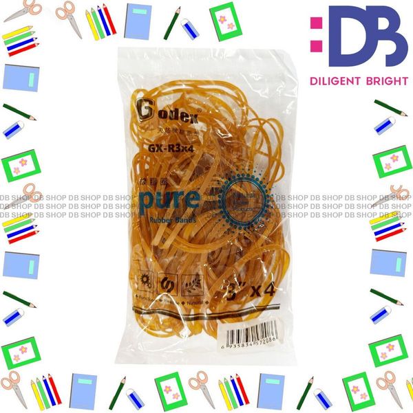 Godex-包裝(粗身)橡筋 黃色橡皮圈 (直徑3吋 X 4mm闊/每包約160克) GX-R3X4