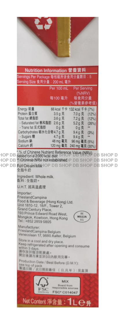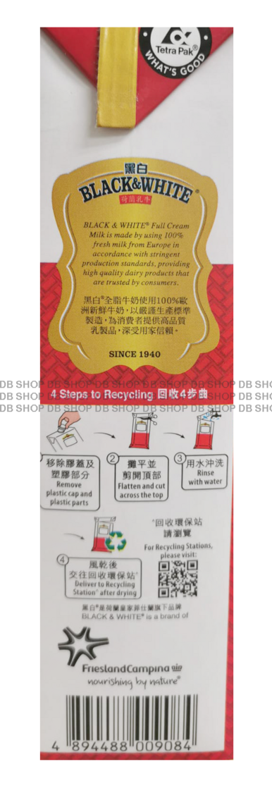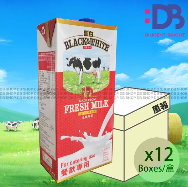 黑白-[原箱] 全脂牛奶 (餐飲紙盒裝) (1升 X 12)