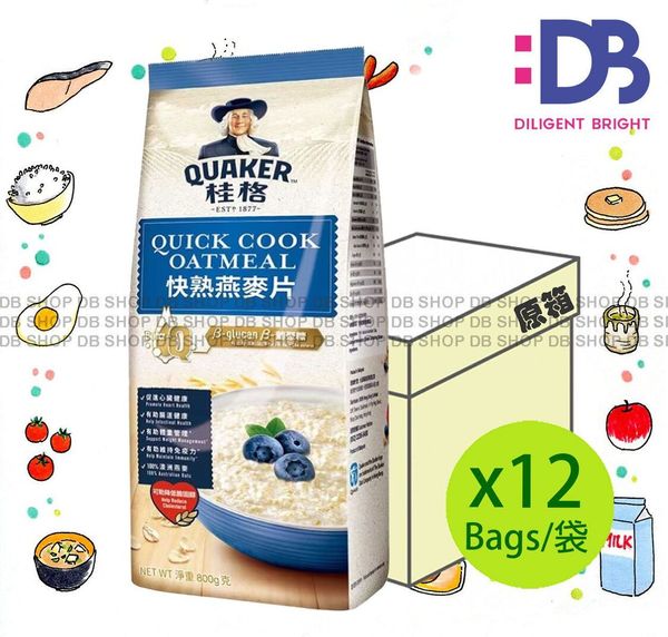 桂格-[原箱] 袋裝 快熟燕麥片 (藍色) (800克 X 12) 增量裝隨機發放