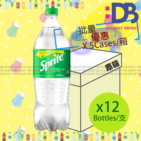 雪碧-[5箱優惠] (家庭大支裝) 檸檬青檸味汽水 (1.25升 X 12) X 5箱 新舊包裝隨機發放
