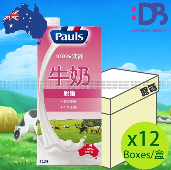 保利-[原箱] 脫脂牛奶 非餐飲版 (紅) (1公升 X 12)