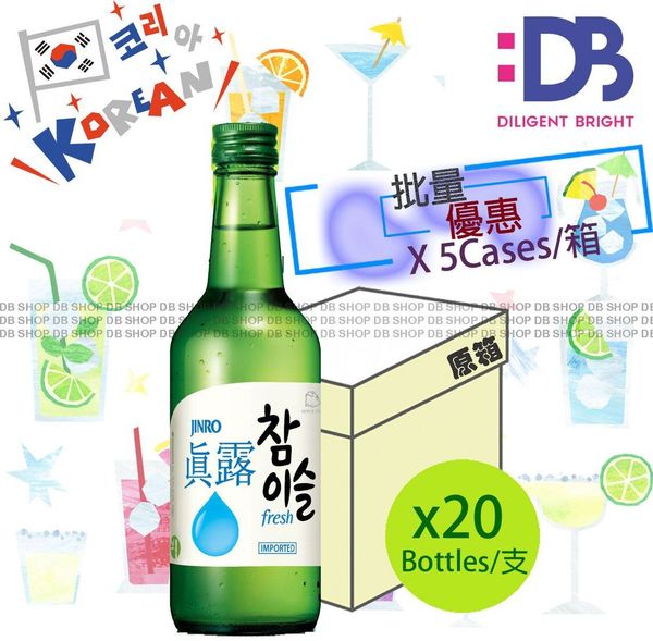 真露-[5箱優惠] 韓國 Fresh 竹炭燒酒 (360毫升 X 20) X 5箱