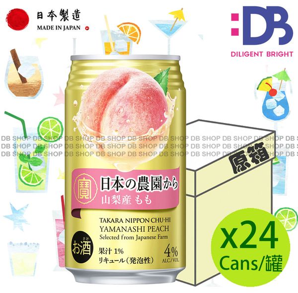 Takara[原箱] 日本農園 山梨產桃果汁汽酒 白桃味 飲品 (350毫升 X 24) 新舊包裝隨機發放