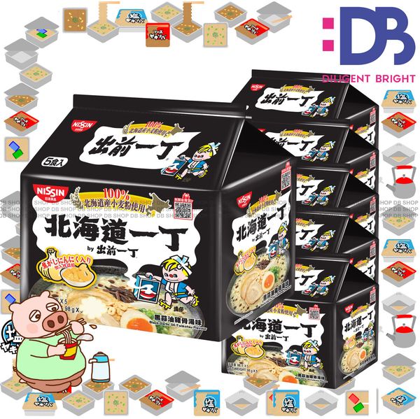 日清-[香港行貨] [原箱] 出前一丁 北海道小麥粉黑蒜油豬骨湯味即食麵 (5包/袋 X 6)