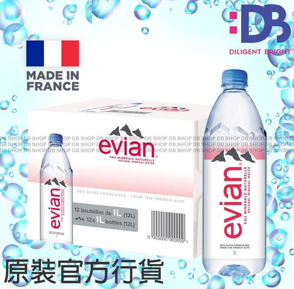 evian-[香港行貨] [原箱] 膠樽裝 法國 依雲天然礦泉水 (1升 x 12)