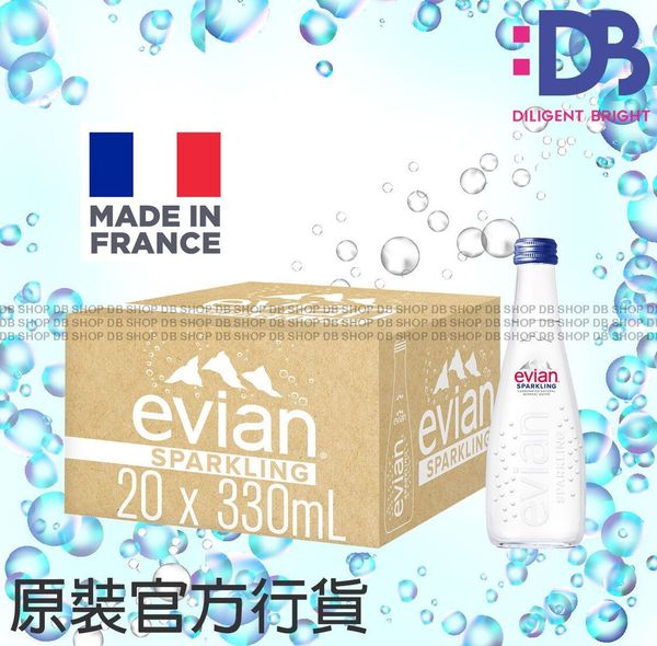 evian-[香港行貨] [原箱] 玻璃樽裝 法國依雲 (有氣Sparkling)天然礦泉水 (330毫升 x 20)